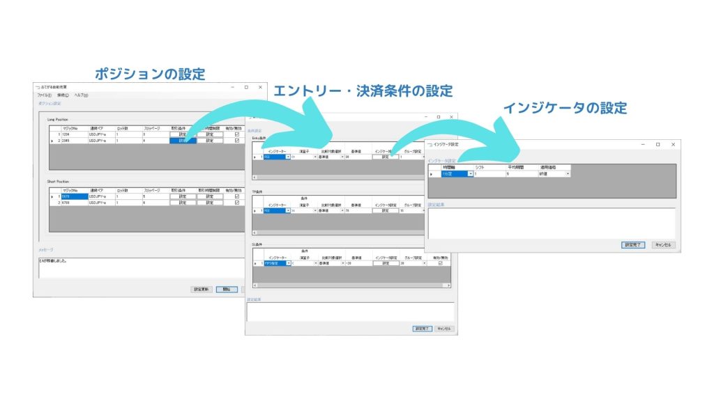 Windows上で動作する設定ツールからパラメータ設定を行う感覚で、EAを作成することが出来ます。